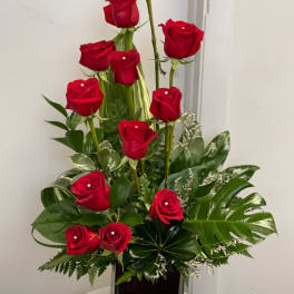 All arrangements are pictured in the deluxe version. Due to limited floral and hard goods supply, all arrangements are subject to substitutions. Most colored vases pictured will most likely be changed to a clear vase. If you have specific requests, please call the shop at 262.583.4719.