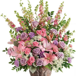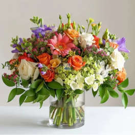 All arrangements are pictured in the deluxe version. Due to limited floral and hard goods supply, all arrangements are subject to substitutions. Most colored vases pictured will most likely be changed to a clear vase. If you have specific requests, please call the shop at 262.583.4719.